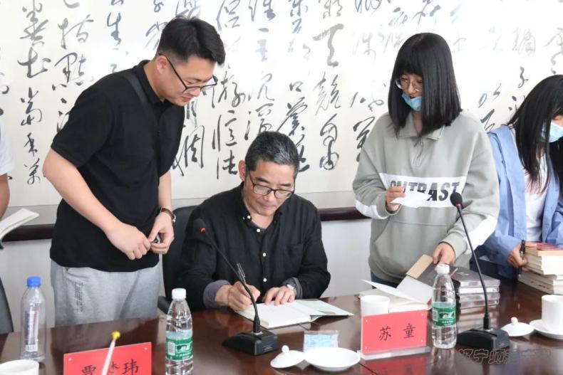 随着三位专家的精彩发言,讲座进入了提问环节。文学院外国文学教研室邢军老师提出,由于代际的原因,审美体验会存在差异性。如何看待学生在阅读过程中所出现的不同体验感呢?苏童老师就这一问题给出了讲解,在他看来,写作其实就是在“给陌生人写信”,是给陌生人呈现细节的过程。作为一位写作者,可能会预想自己理想的收信人,但是当读者愈来愈多,他们与作者之间的联系会随之变得生疏而无法想象。灯光下,有多少人停驻、路过、绕过,都是一种命运。文学院现当代文学教研室王桂荣老师问道《妻妾成群》中的精神内涵。苏童老师提及,他认为自己的这部小说想要呈现的实际上是对人际关系的探索。最后,苏童老师还回答了一位同学关于如何在小说描写中呈现氛围感的问题,在他看来,写作并无诀窍,很少有作家会考虑如何来营造氛围。然而,当在小说中将某一处细节充分地、到位地书写出来时,其氛围感也就自然而然地呈现出来了。