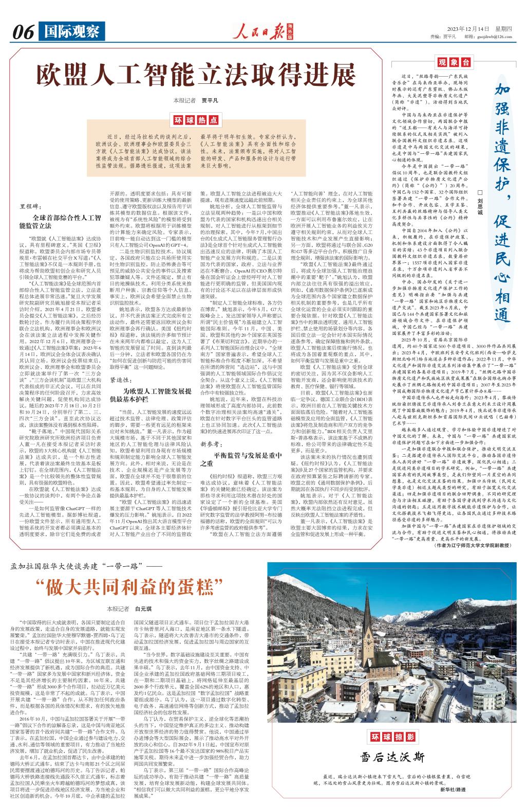 我院刘思诚副教授撰写的《加强非遗保护,促进民心相通》刊发于2023年12月15日《人民日报》并被中宣部“学习强国”平台全文转载。