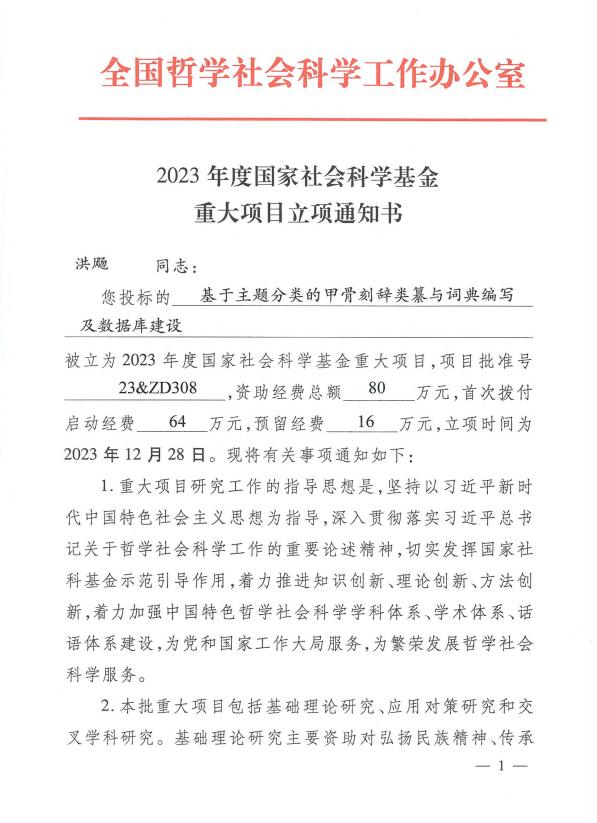 洪飏教授获批2023年度国家社科基金重大项目
