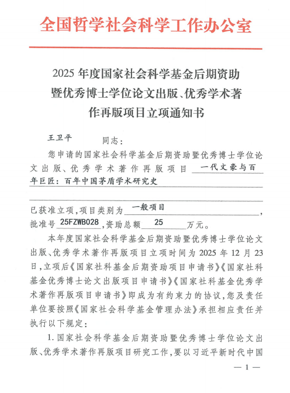 王卫平教授获批2025年度国家社会科学基金后期资助项目